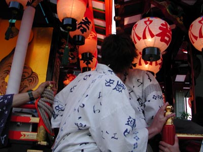 ![]() −15−おいおい、当たってないかい?(笑) 今年提灯は全て新調しました。デザインは創建当時のに全て戻しました。 |