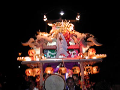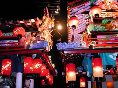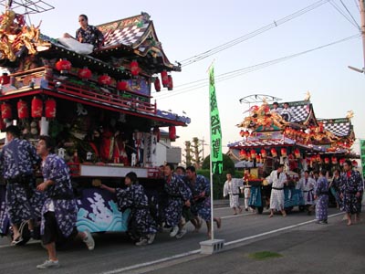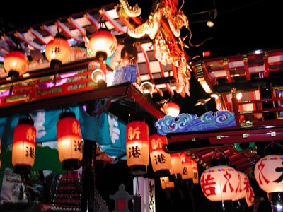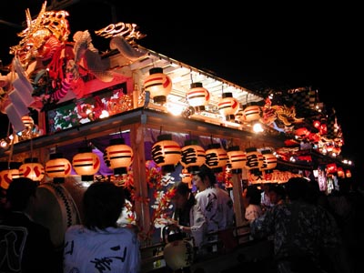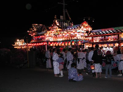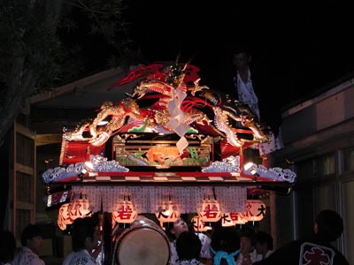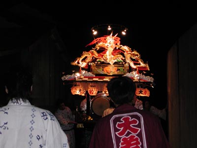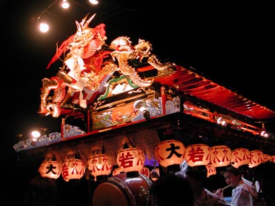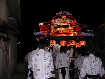 ![]() −3−円光寺前。夕食後、山車が動き始めました。新港です。この山車は 最高のバランスだと思っています。彩色もいい。追い山車ショット1 |