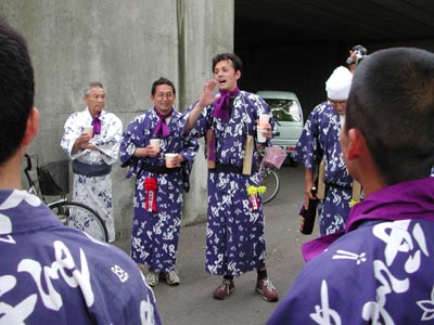 ![]() -15-境内に入る前の仲若全員での気合入れ。 宰領2名からの指示に力が入る。 |