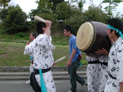 ![]() -39-太鼓で神輿のお供をするということです。 う〜ん、こういう場面は初めて見ました。三佐でも見たことないです。 |
