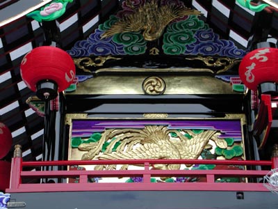 ![]() -36-下若の大屋根下右側(通称:運転席側、笑)の鳳凰。 上部の紫がうまく効いていますね。上の5番と同じ。 |