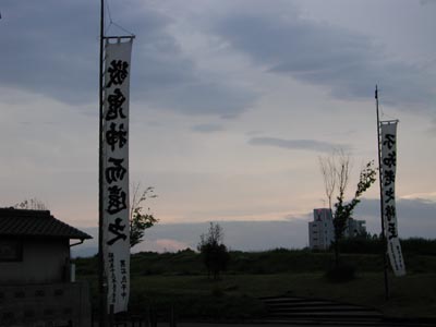 ![]() -1-夕暮れ時、空の色と幟が妙に美しかったので撮りました。 しばし見とれていました。まじに祭り出ないで帰ろうかと思いました(笑) |
