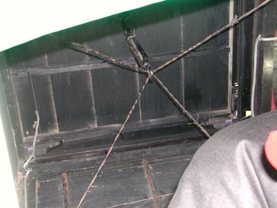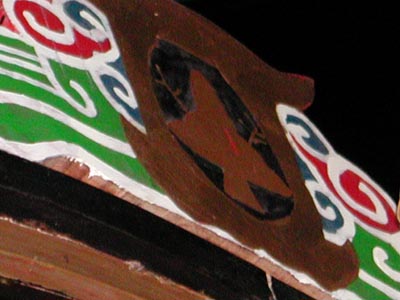 ![]() -5-上若の大屋根端の画像。独特な方形をしています。 ここは、もともと紙を貼る構造になっていないのでしょうか?謎です。 |