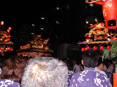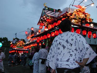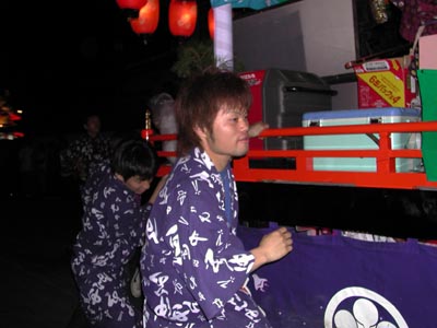 ![]() -4-天満社を出て、幟の付近の様子。 S氏でしょうか?何を見ているのでしょうか。空?自分達の山車? |