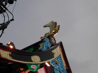 ![]() -12-指摘があるまで気がつきませんでした。これは出若の山車の 大屋根後部上端の神社の紋ですが、何故か野坂神社の紋です?ん? |
