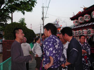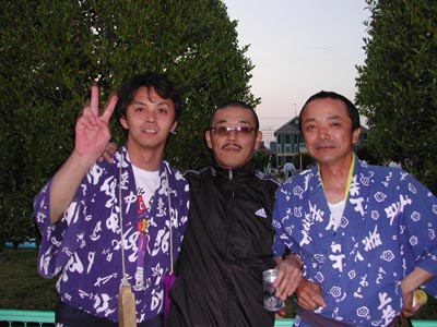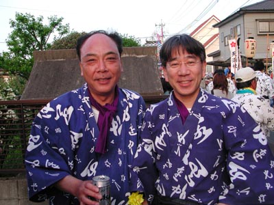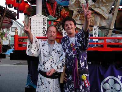 ![]() -7-仲若宰領M氏と同じく仲若(三佐の方の)のY氏とのショット。別に喧嘩を売っているわけではありません。祭りについて楽しく会話していました。 |