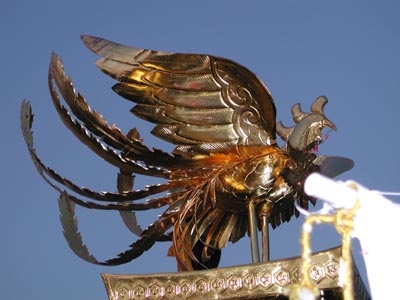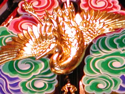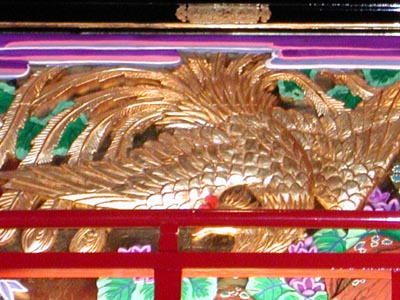 ![]() -18-大屋根直下の三角部分の彫り物。鶴?でしょうか。キンキラキンで綺麗です。 |