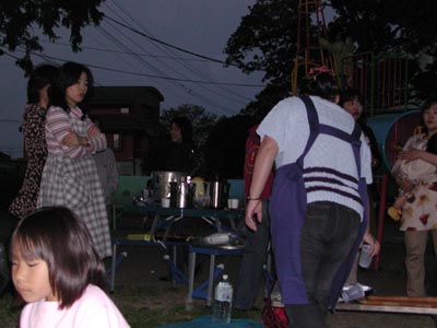 ![]() -10-夕食をとっていると、神輿の運行上のことでなにやらもめている様子です。よく聞こえませんでした。台車に載せるのは邪道ではないかとくような趣旨のことだったと思います。 |