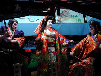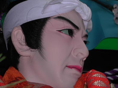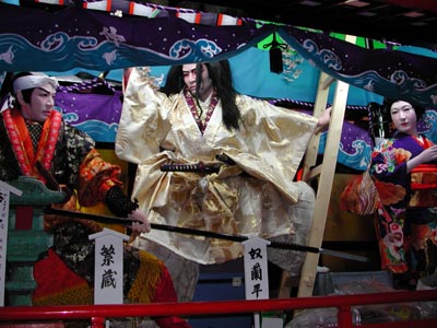 ![]() -14-同じく新町の人形です。ここは舞台が大きいので人形さんも乗りがいがあるでしょう。右の人形の方すいません、切れています。 |