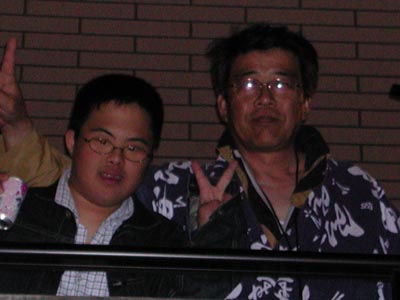 ![]() -6-仲若宰領のM氏と出若の偉い方とのツーショットです。ピースサインの指が長い!笑顔がいい。祭り、楽しんでいますかー? |