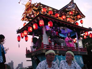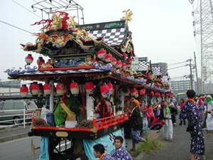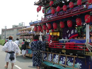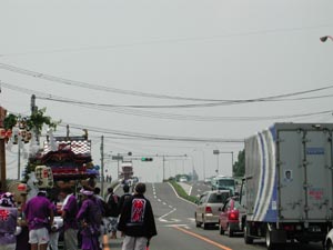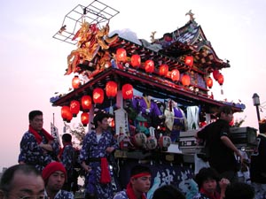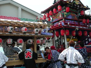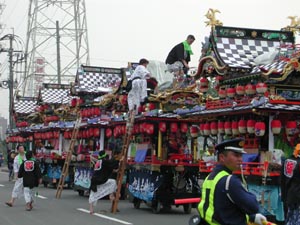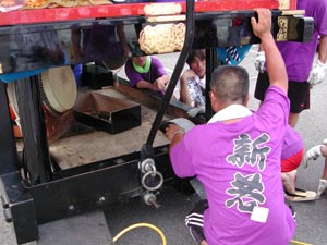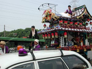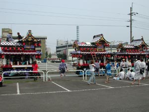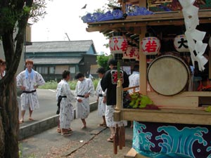 ![]() -12-新港の山車を呆然と眺める他町内の青年達。 やっぱ機械は早い! |
