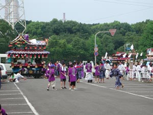 ![]() -13-予定時刻に平和市民公園に到着 ここに人形山車5台並んでいる姿は圧巻ものです。 |