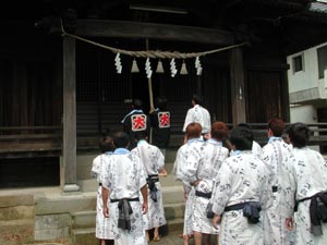 ![]() -3-野坂神社にて、道中の安全を祈願して、参拝。 ん?黒半纏が2名しかいない? |