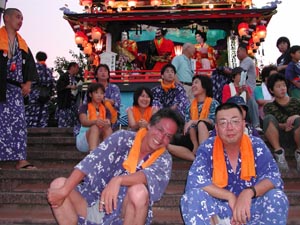![]() -31-左は同級生のK氏です。右はH氏。 どちらもわたし同様祭りきちがいです。(ごめん) |