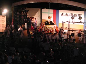 ![]() -42-ステージでは、いつの間にかカラオケタイムが終わり、 神輿が出てました。これだけで予算つくならならいいよな。 |